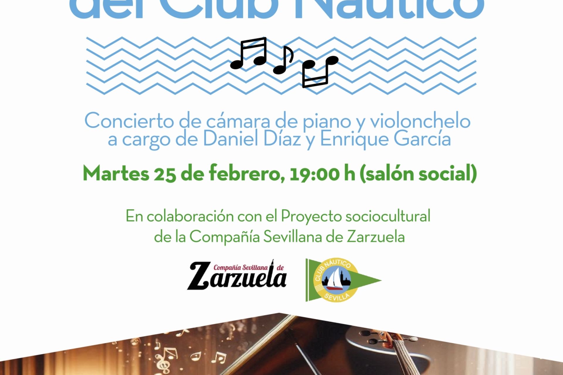 Este martes, 25 de febrero, a las 19:00 horas en el salón social, concierto de cámara de piano y violonchelo a cargo de Daniel Díaz y Quique Santamaría a celebrar con la colaboración del Proyecto sociocultural de la Compañía Sevillana de Zarzuela.