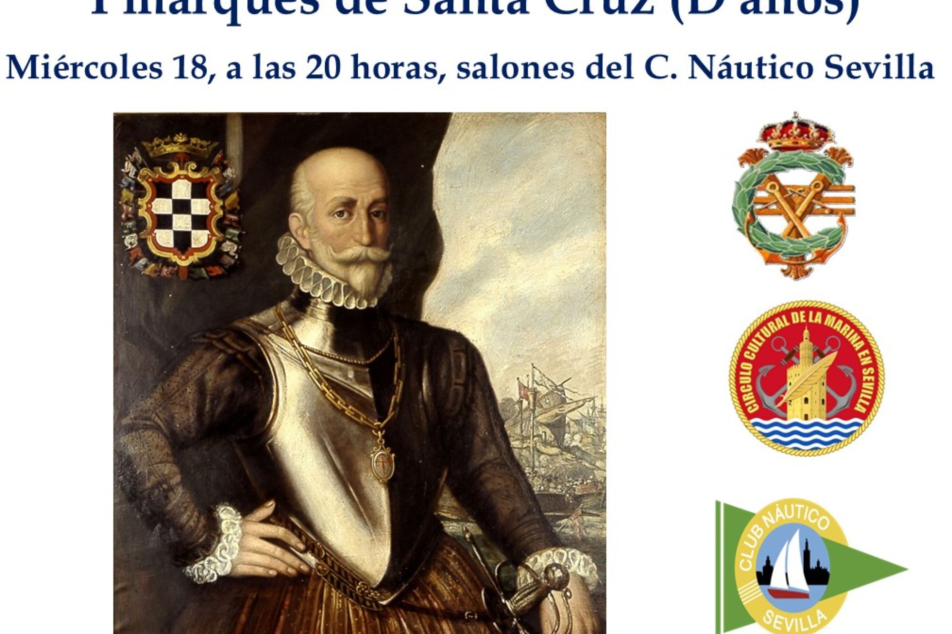 El miércoles 18 de febrero a las 20:00 h en el salón de celebraciones del Club Náutico a cargo de los doctores en Historia Enrique Tapias y María Fidalgo, primer acto del ciclo cultural organizado por la Real Asamblea de Capitanes de Yate con la colaboración del Club Náutico Sevilla y el Círculo Cultural de la Marina en Sevilla.
