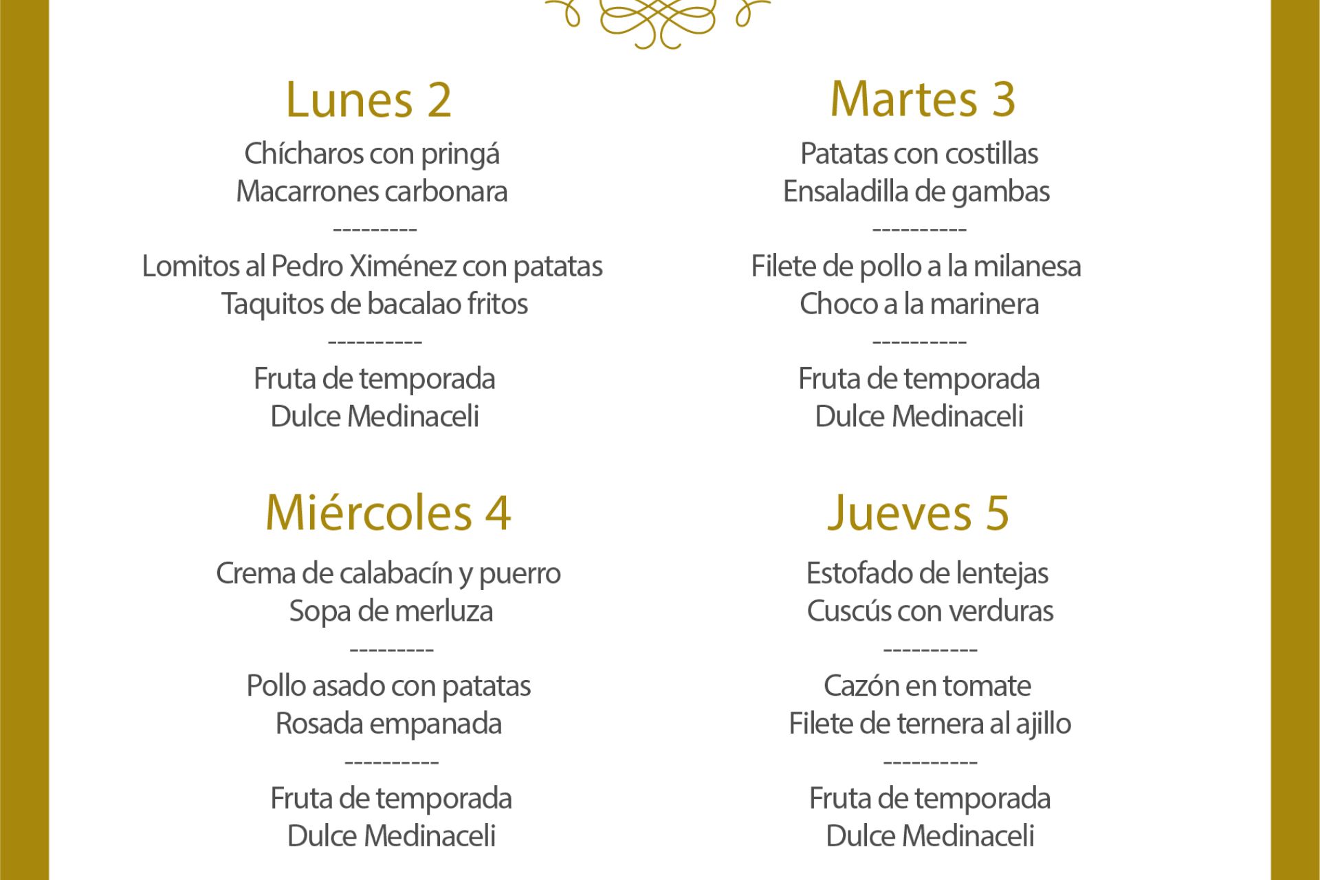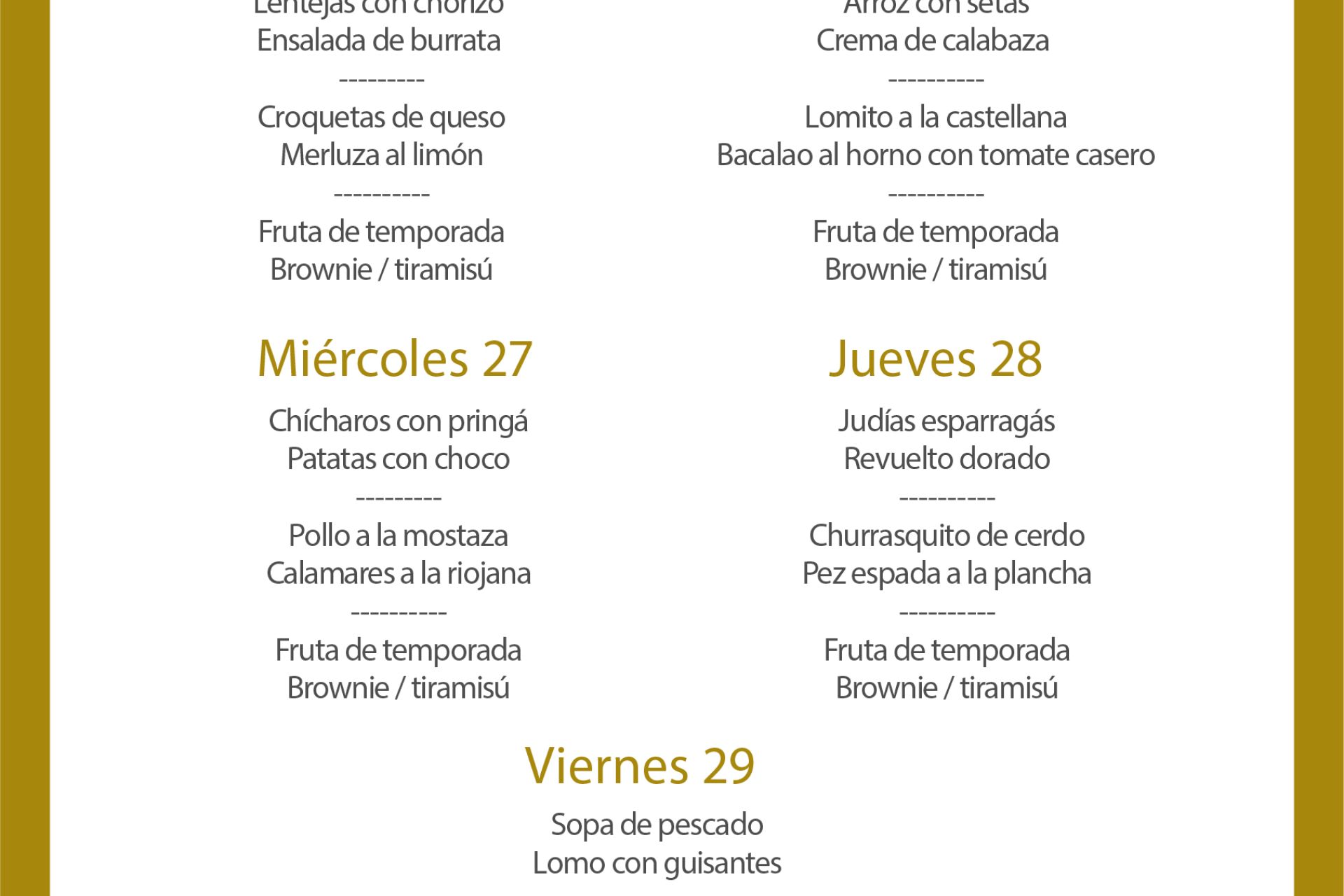 Disponible a mediodía en el salón social desde el lunes 2 al jueves 5 de diciembre al precio de 10€/persona (IVA, pan/picos y una bebida incluidos). Viernes 6, festivo, no disponible.