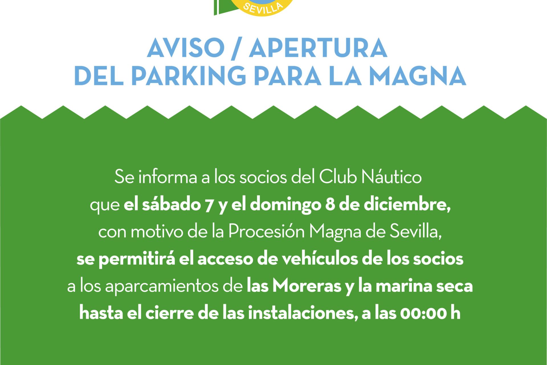 AVISO / Apertura del parking del Club Náutico para la Procesión Magna de Sevilla