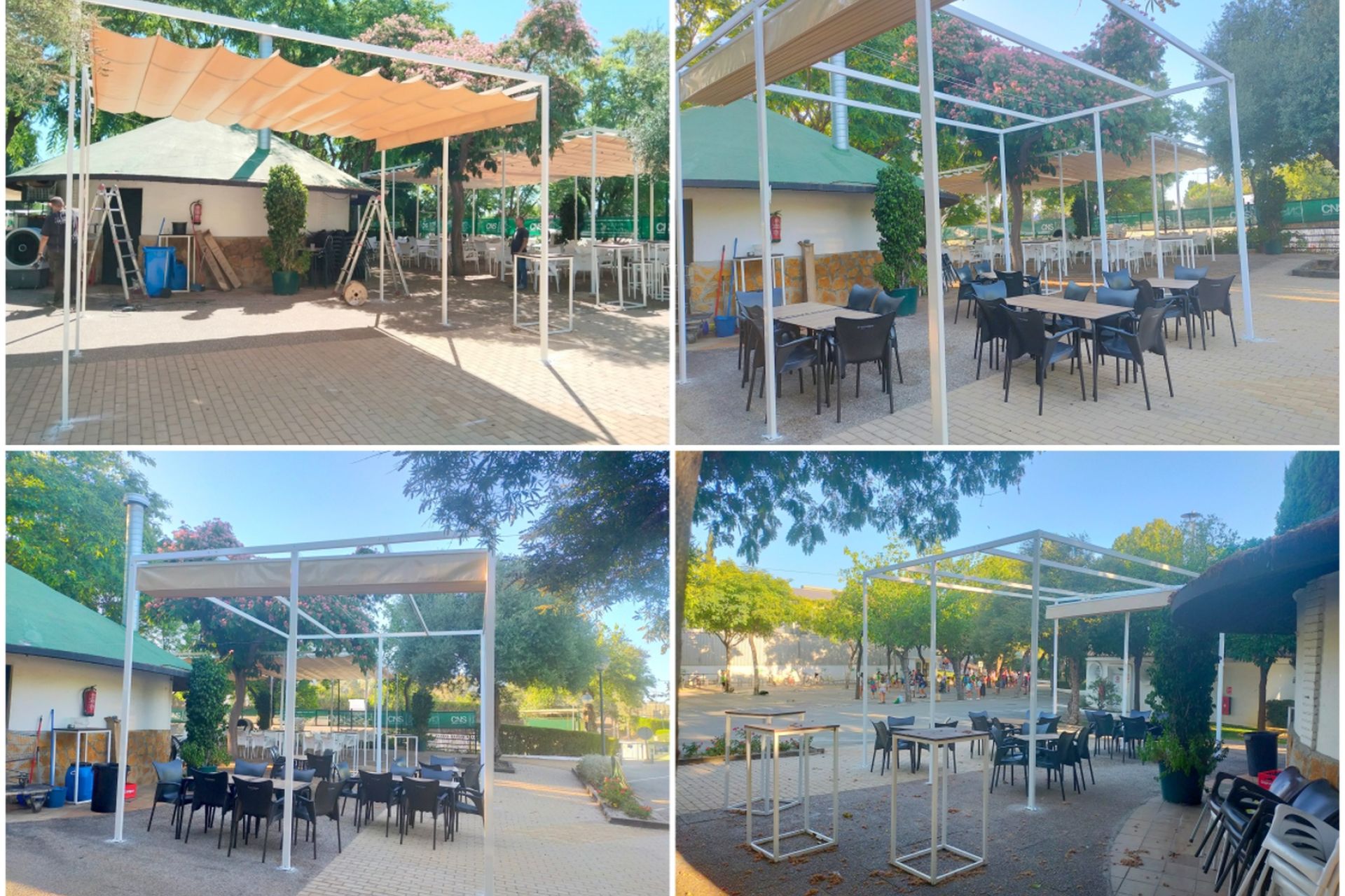 Prosiguiendo con la actualización de las instalaciones en la temporada de verano, se informa a los socios que se ha instalado una nueva pérgola en la parte trasera del Bar Chino para complementar la ya existente y ampliar así las zonas de sombra para los usuarios.