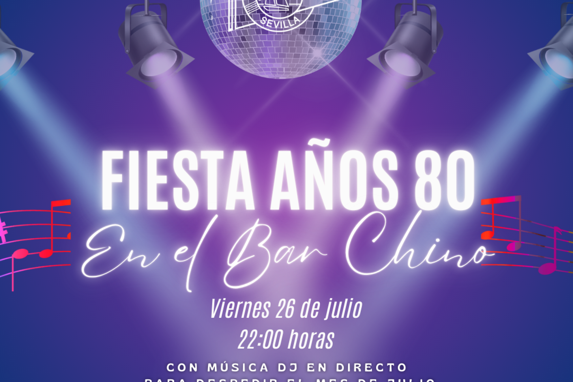 Despedimos el mes de julio el viernes 26 a partir de las 22:00 horas con una fiesta en el Bar Chino con música DJ de la década de los 80. ¿Te la vas a perder?