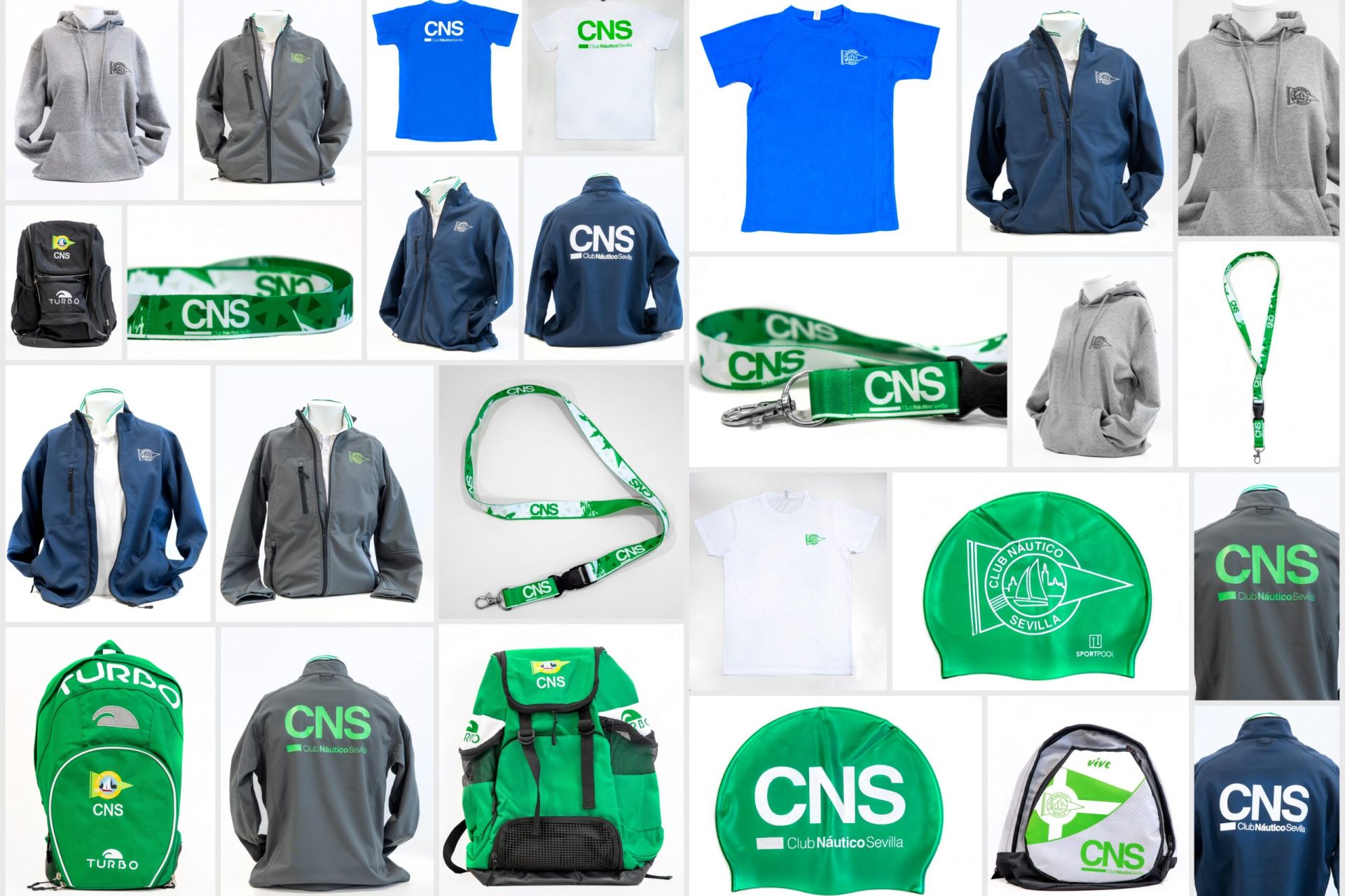 Disfruta de la amplia variedad de productos oficiales del Náutico, a la venta en recepción según disponibilidad de tallas/colores: mochila Turbo negra grande (50€), mochila Turbo verde (28€/pequeña y 35€/grande), mochila Vive (20€), sudadera gris (22€), cazadoras Soft Shell verde, azul y gris (35,50€), además de colgantes (3€), gemelos (25,00€), camisetas (5€) y gorros de natación (3€/infantil y 4,5€/adulto).