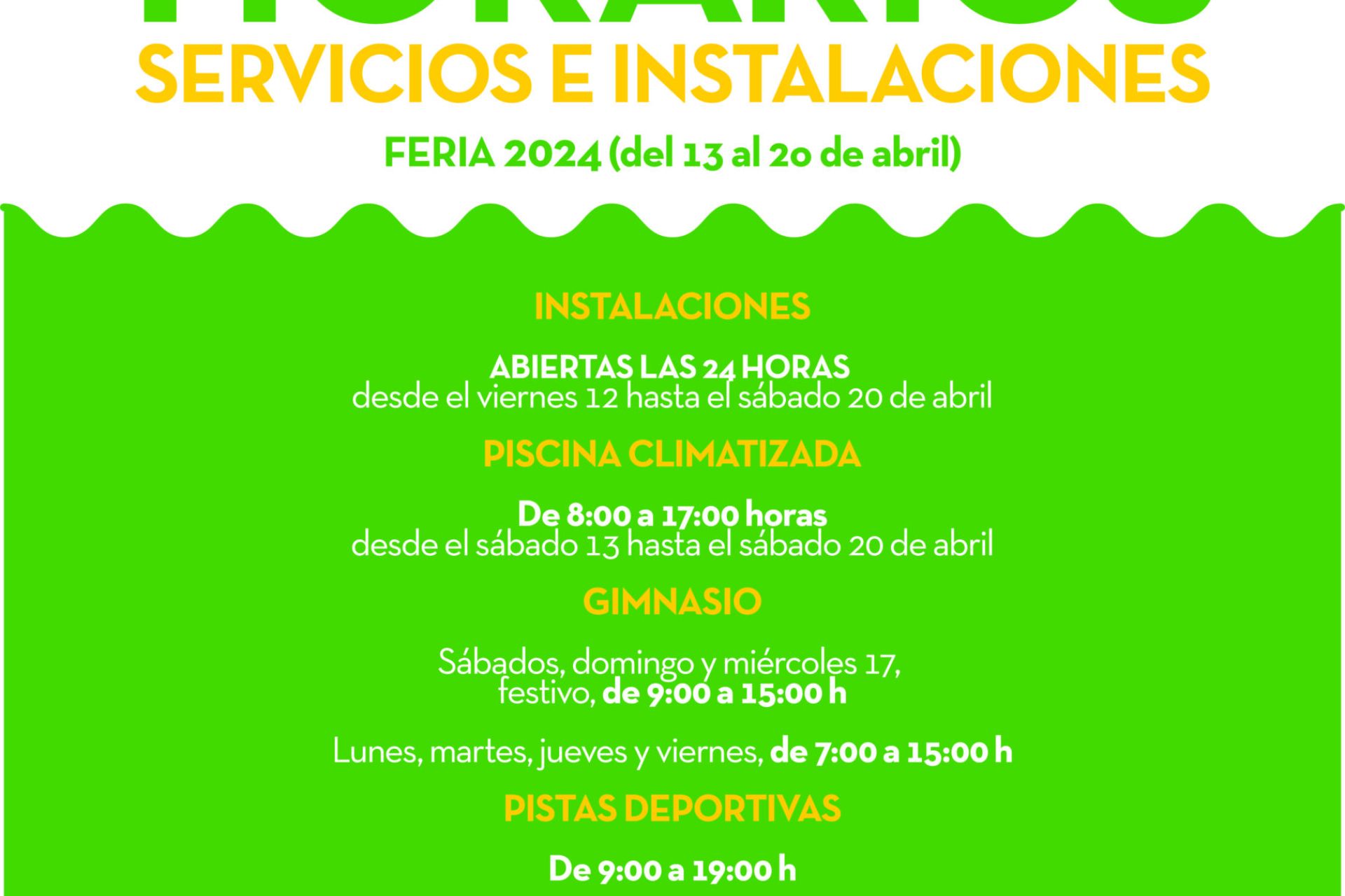 Horarios especiales de las instalaciones y los diferentes servicios del 13 al 20 de abril. A partir del domingo 21 de abril, el horario será el habitual.
