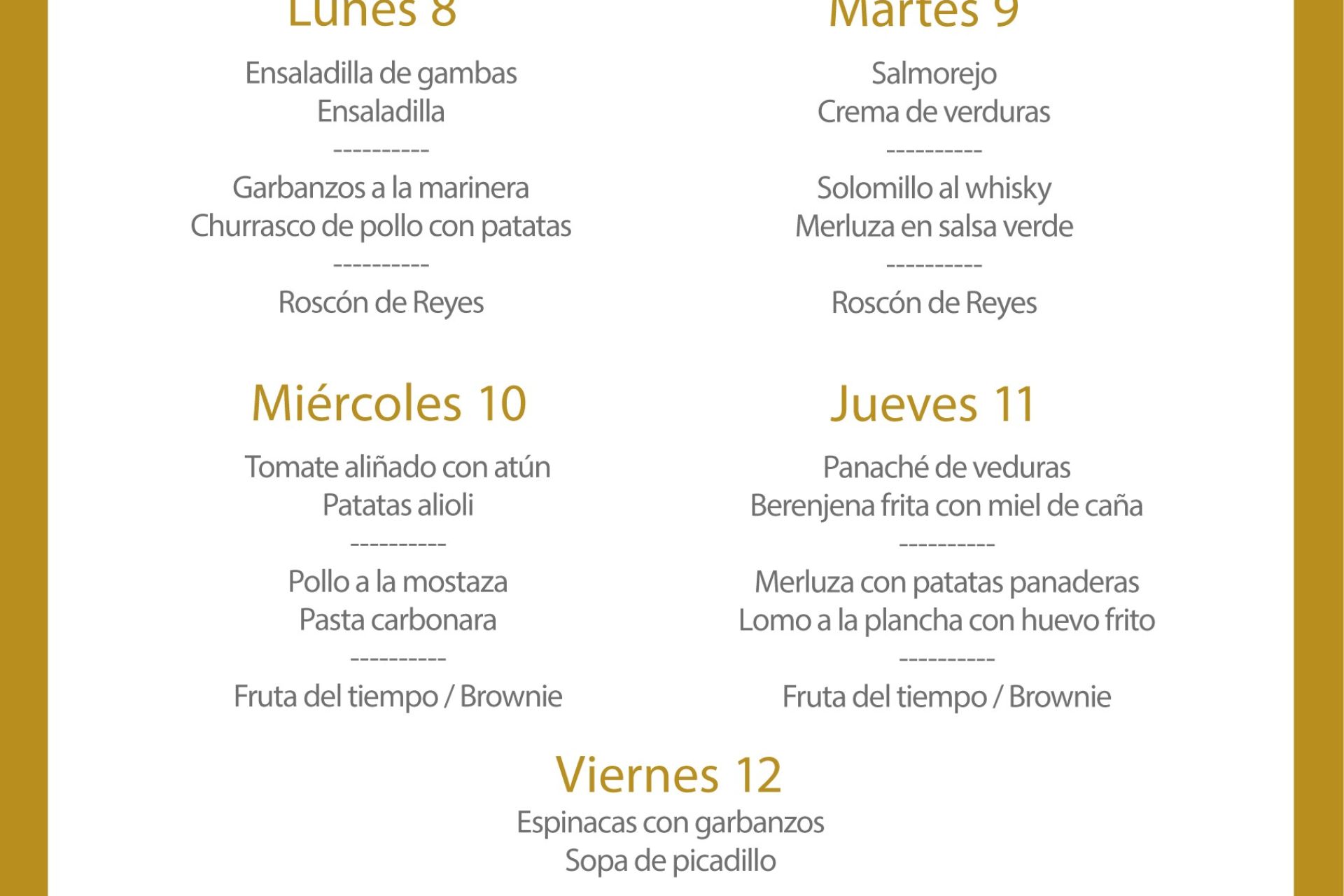 Menú disponible a mediodía del lunes 15 al viernes 19 de enero en la planta alta del salón social al precio de 9€/persona (IVA, pan/picos y una bebida incluidos).