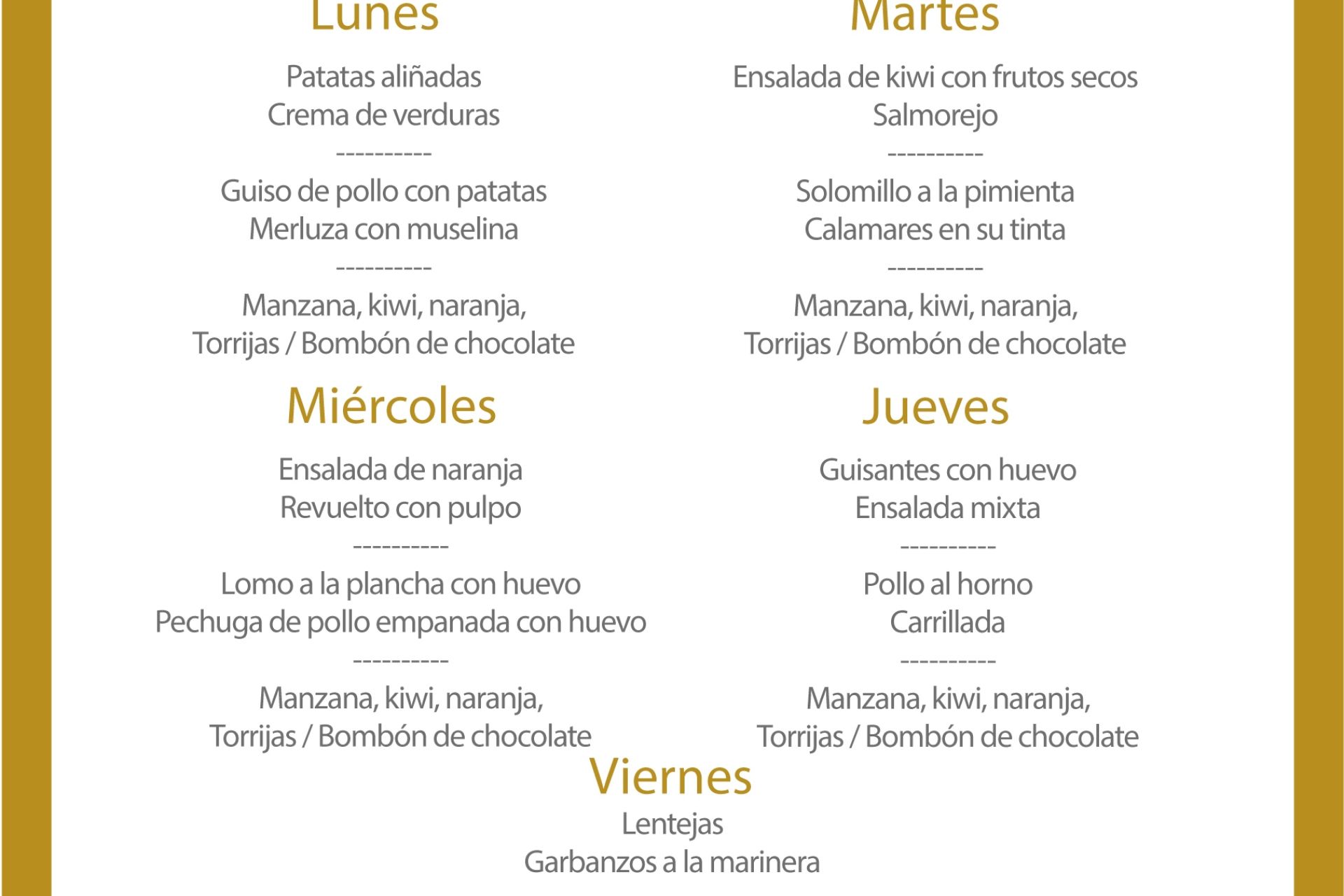 Disponible a mediodía de lunes a viernes en la planta alta del salón social al precio de 9€/persona (IVA, pan/picos y una bebida incluidos).