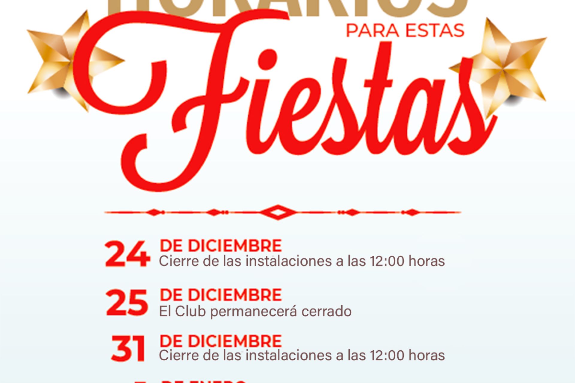 Se informa a los socios que las instalaciones cerrarán a las 12:00 horas los días 24 y 31 de diciembre y 5 de enero, no abriendo sus puertas al estar cerrado el Club Náutico los festivos 25 de diciembre y 1 de enero, mientras que el 6 de enero la piscina dejará de estar disponible a las 15:00 horas.