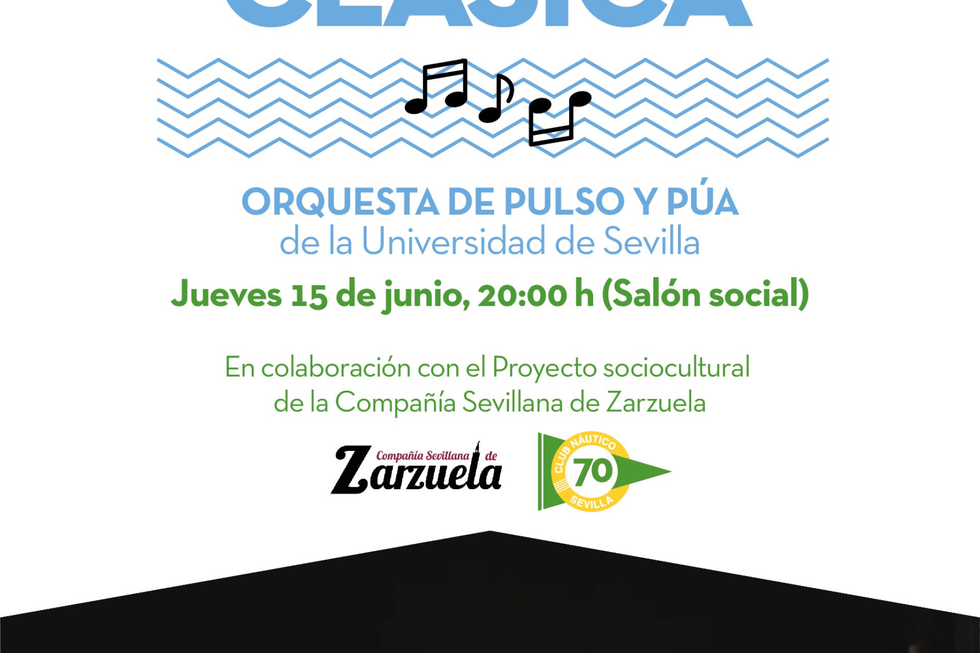 Recital de la Orquesta de Pulso y Púa de la Universidad de Sevilla a celebrar, con la colaboración del Proyecto sociocultural de la Compañía Sevillana de Zarzuela, el jueves 15 de junio a las 20:00 h en la planta alta de los salones sociales. Inscripciones, a través del ÁREA DE SOCIOS WEB (inscripción en clases). Aforo limitado.