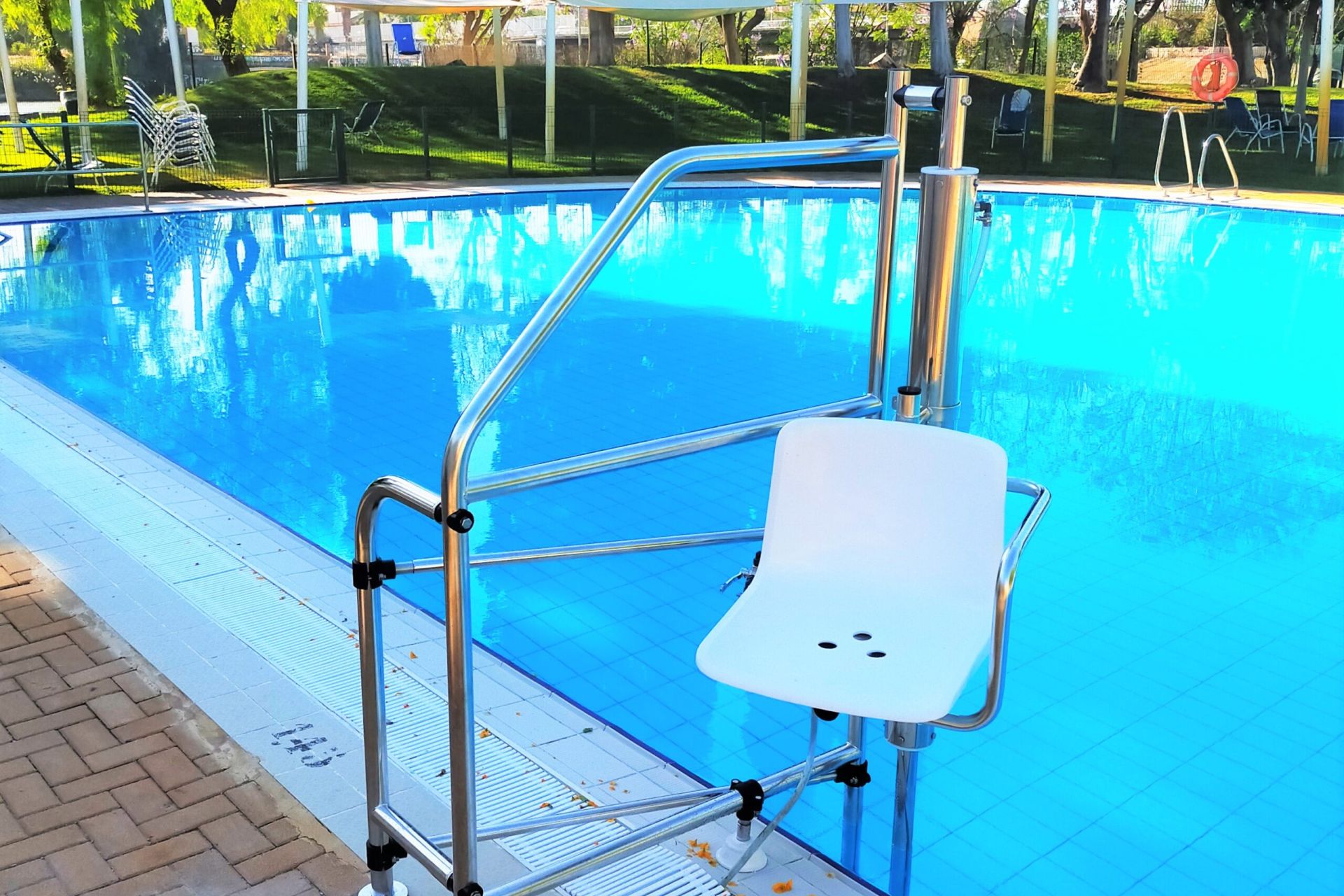 Instalación de silla hidráulica en la piscina familiar del Club Náutico, que se une a las previamente ya existentes en las piscinas olímpica y de 25 metros.