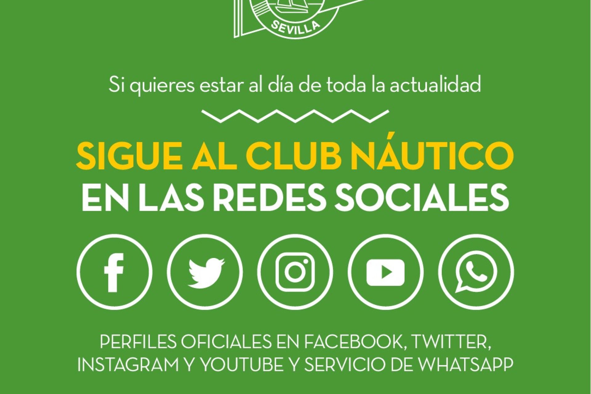 A través de las cuentas y perfiles corporativos de Facebook (ClubNauticoSevilla), Twitter (@CNauticoSevilla) e Instagram (@Club_Nautico_Sevilla).