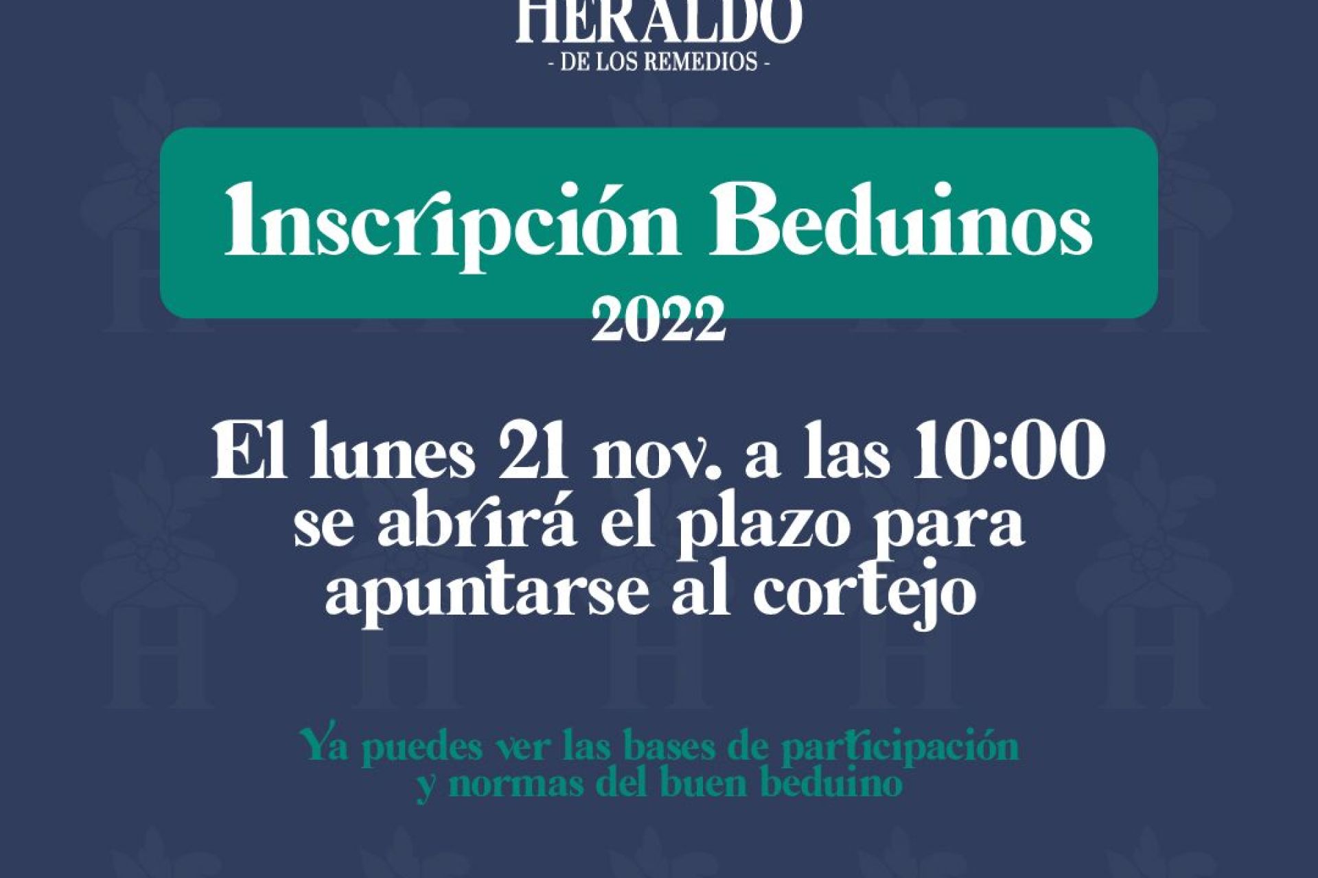 Abierto el plazo de inscripción en www.heraldodelosremedios.com para participar como beduino en el cortejo del 28 de diciembre, que finalizará en el Club Náutico