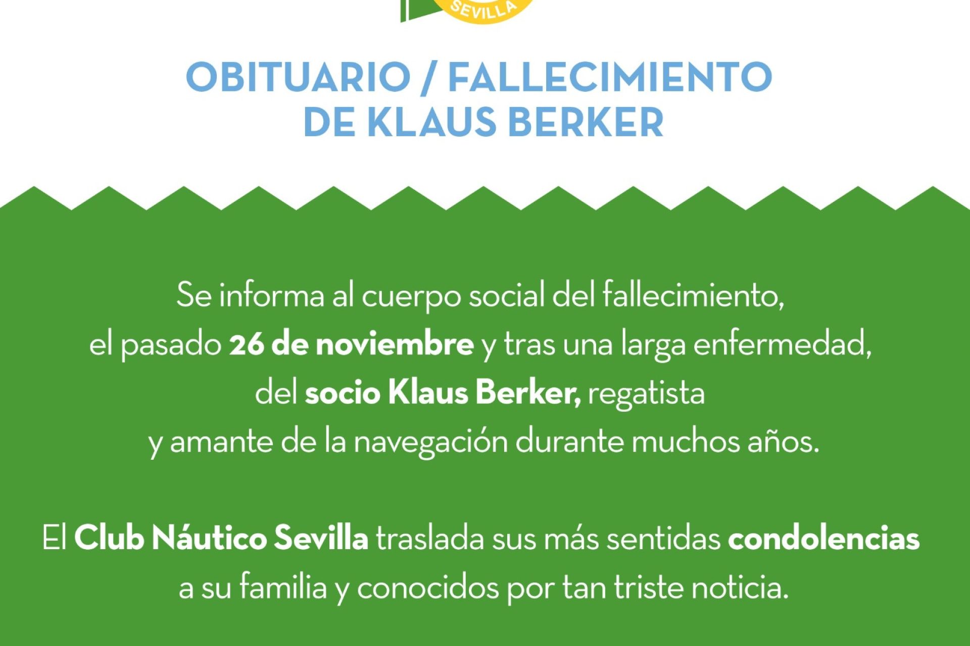 Fallecimiento del socio del Club Náutico Klaus Berker