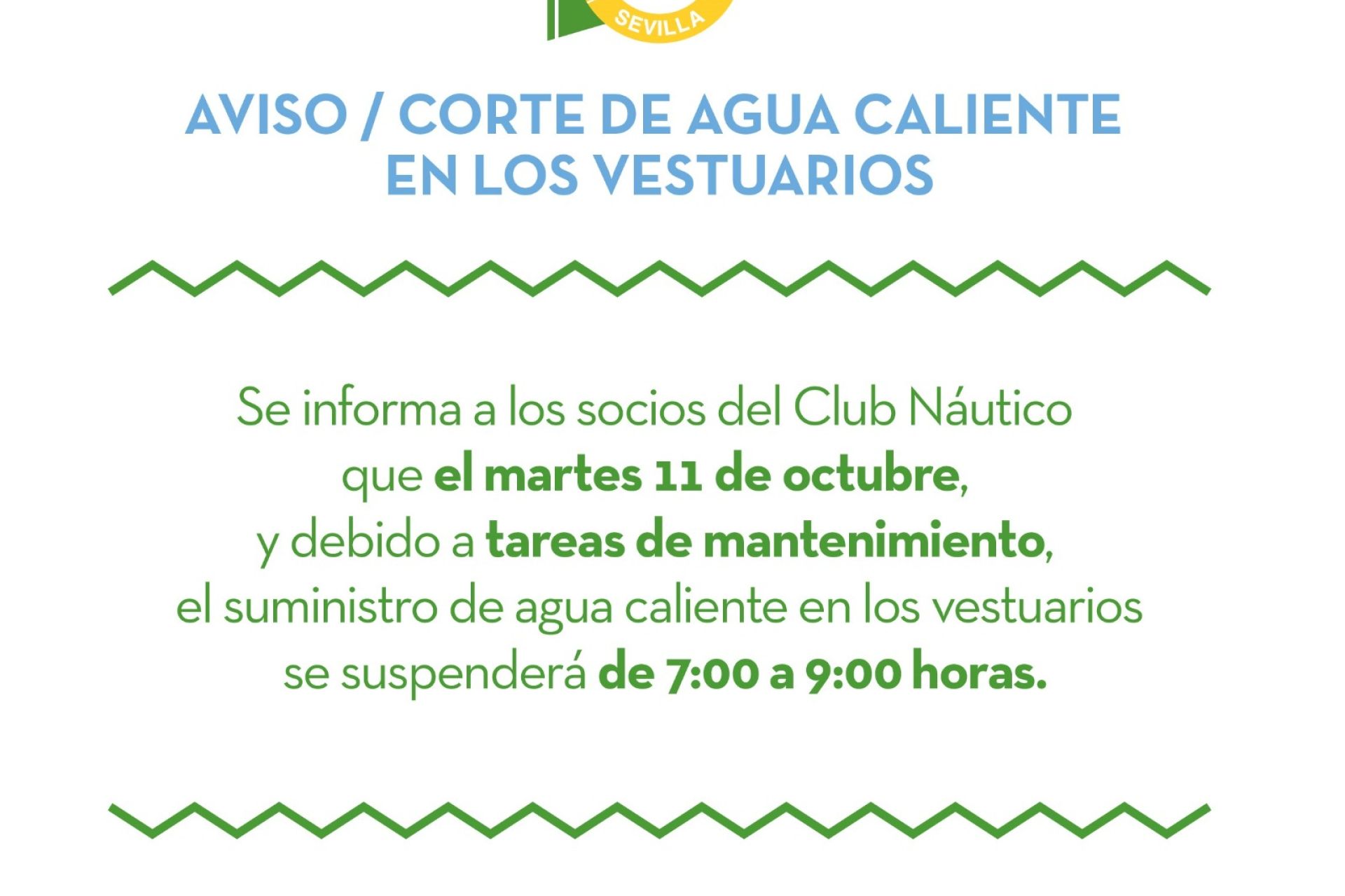 AVISO / Corte de agua caliente en los vestuarios