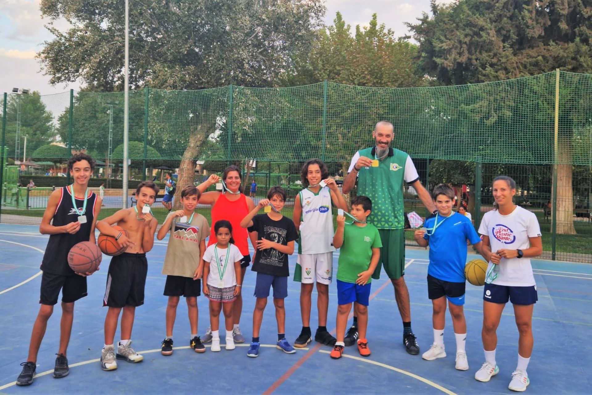 Javier Serrano (minibasket) y Nacho Romero, vencedores de la competición de triples de fin de la temporada estival, en la que todos los participantes recibieron medalla.