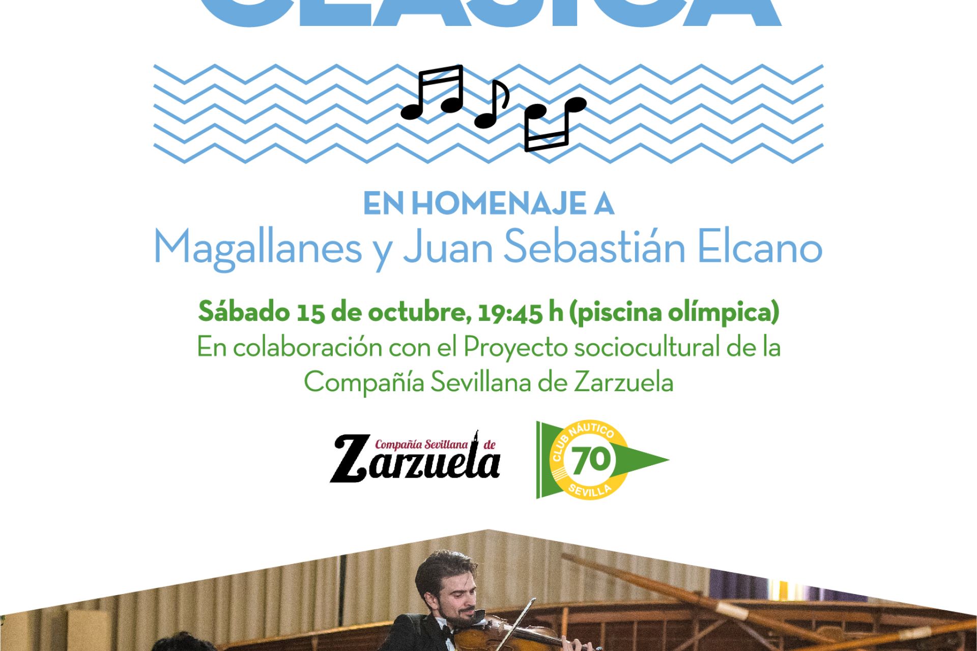 En homenaje a Magallanes y Juan Sebastián Elcano y con la colaboración del Proyecto sociocultural de la Compañía Sevillana de Zarzuela, el sábado 15 de octubre a las 19:45 h en la piscina olímpica. Inscripciones, a través del ÁREA DE SOCIOS WEB Aforo limitado.