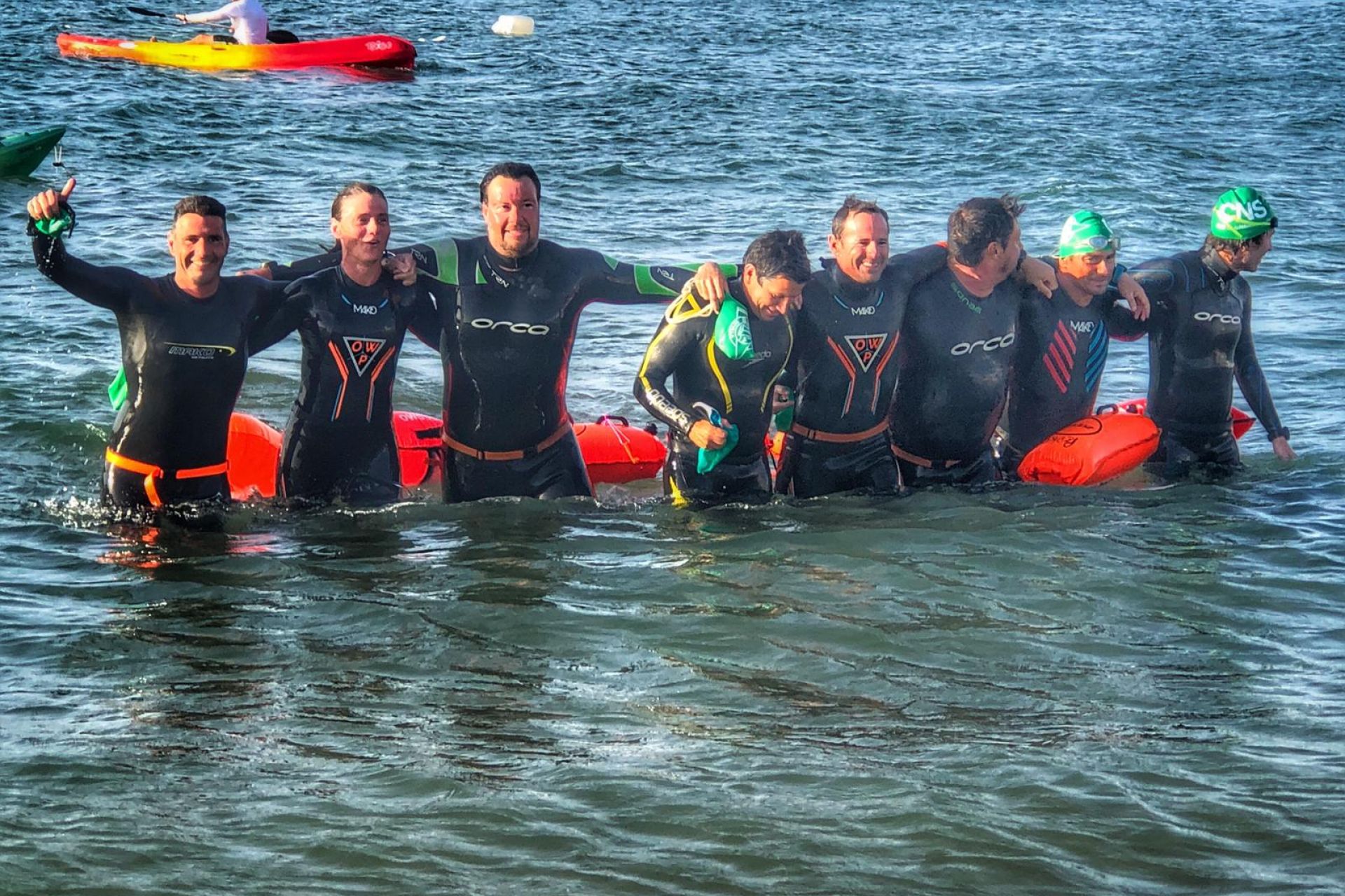 Ocho nadadores cubrieron en dos jornadas los 90 km entre Sevilla y Sanlúcar de Barrameda a beneficio de la Asociación Española para los efectos del tratamiento del cáncer (AEetc).
