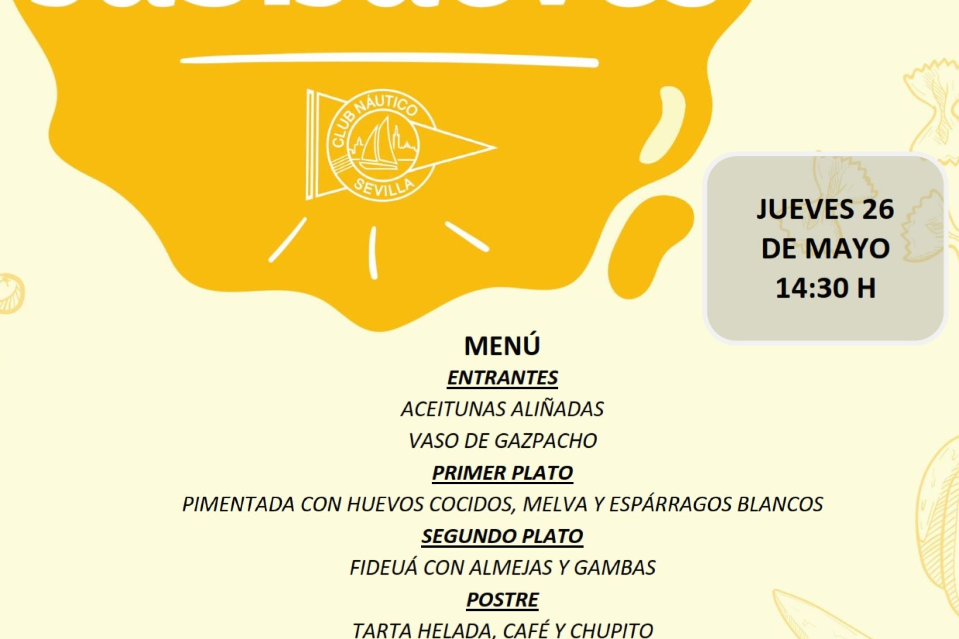 La última convocatoria previa a la temporada de verano para los jubilados del Club Náutico está prevista este jueves, 26 de mayo, a las 14:30 horas. Se ruega confirmación previa con antelación en Conserjería o el 954 454 777.