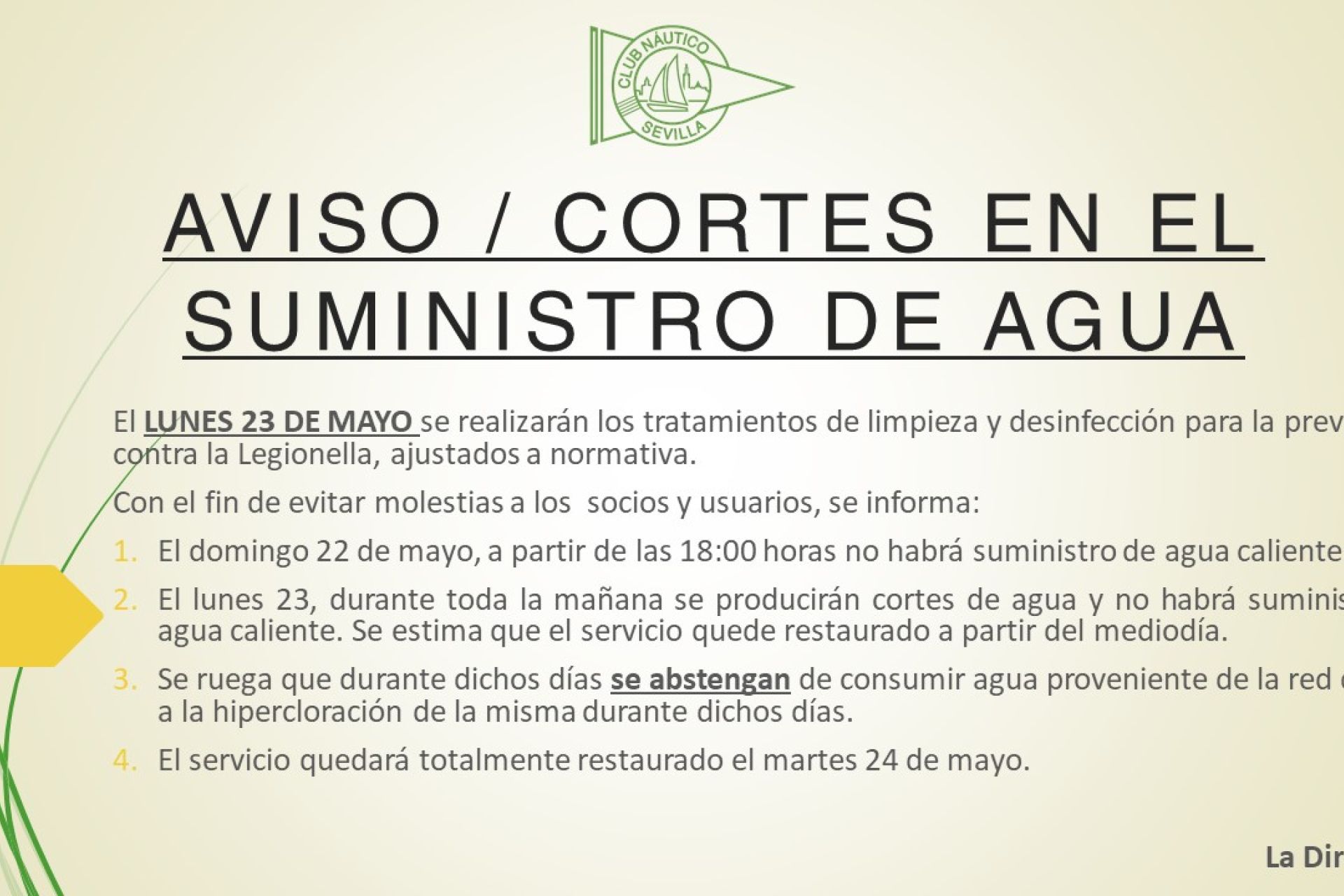 AVISO / Cortes en el suministro de agua del Club Náutico