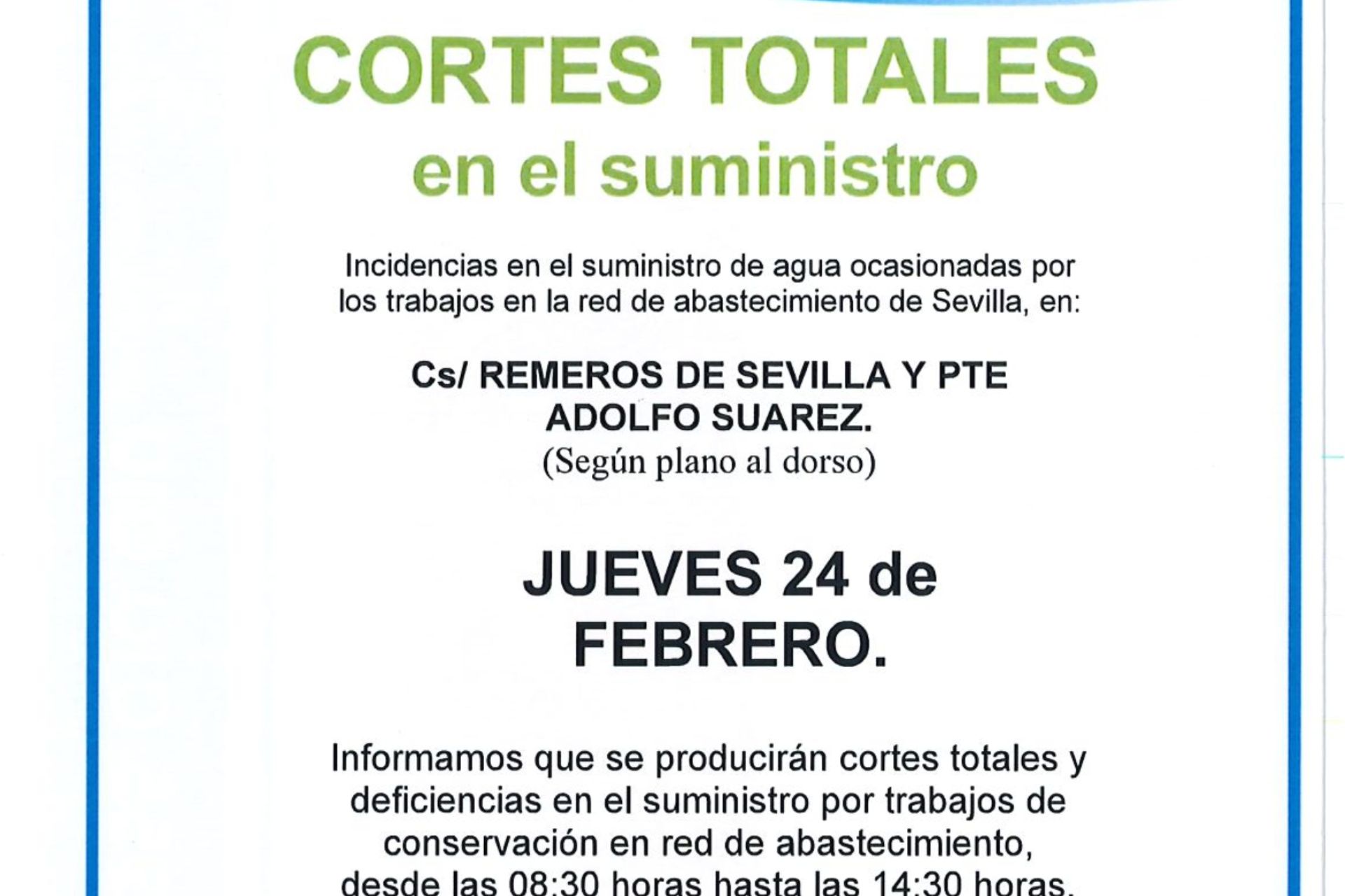 AVISO / Cortes en el suministro de agua