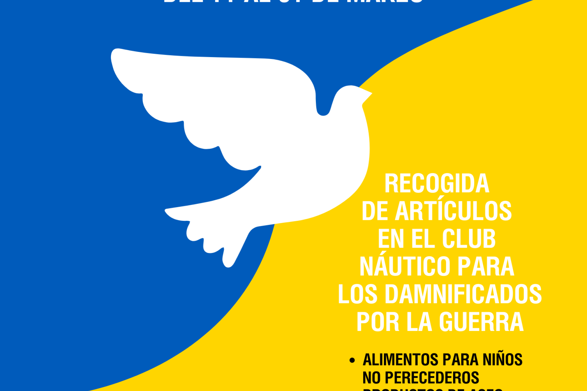 Del 11 al 31 de marzo, recogida de artículos en el Club Náutico para los damnificados por la guerra, para lo que se instalarán contenedores en Conserjería.