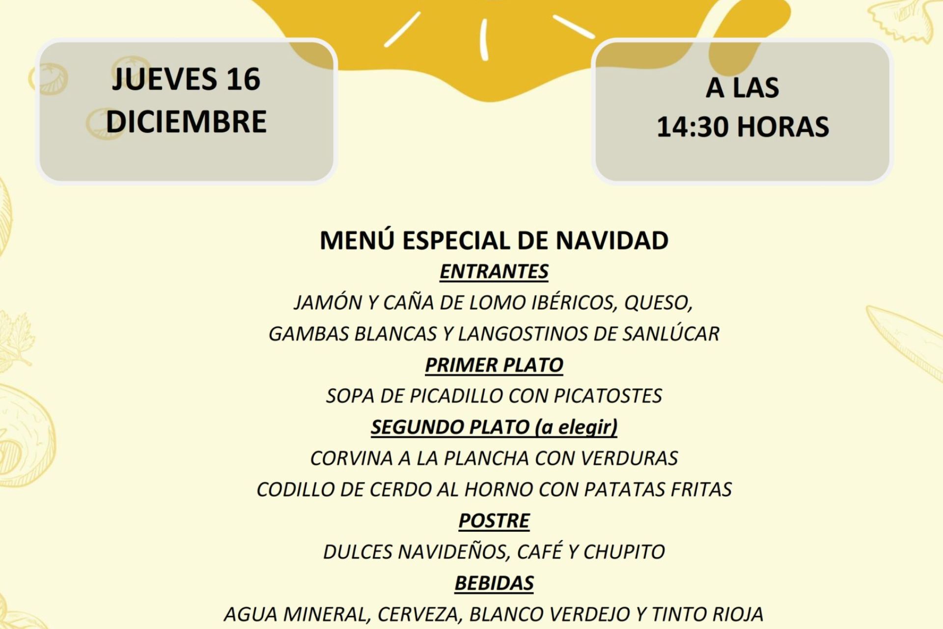 Convocatoria prenavideña de la tertulia para jubilados del Club Náutico, a celebrar el jueves 16 de diciembre. Se ruega confirmación previa y elección del segundo plato con cuatro/cinco días de antelación en Conserjería o el 954 454 777.