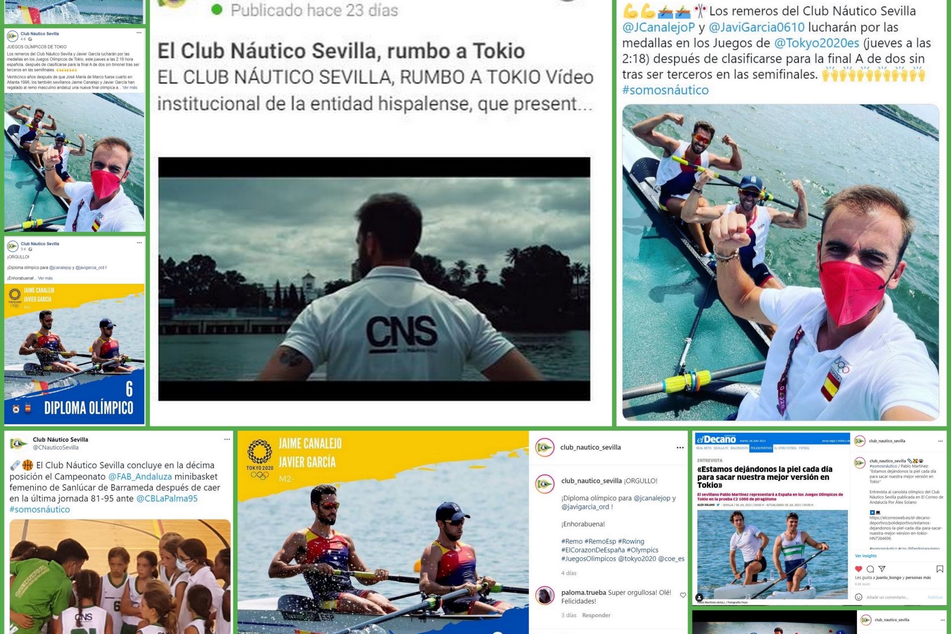 El diploma olímpico en los Juegos de Tokio de los remeros Javier García y Jaime Canalejo acaparó el protagonismo el pasado mes de julio en los perfiles oficiales del Club Náutico en Facebook, Twitter e Instagram.