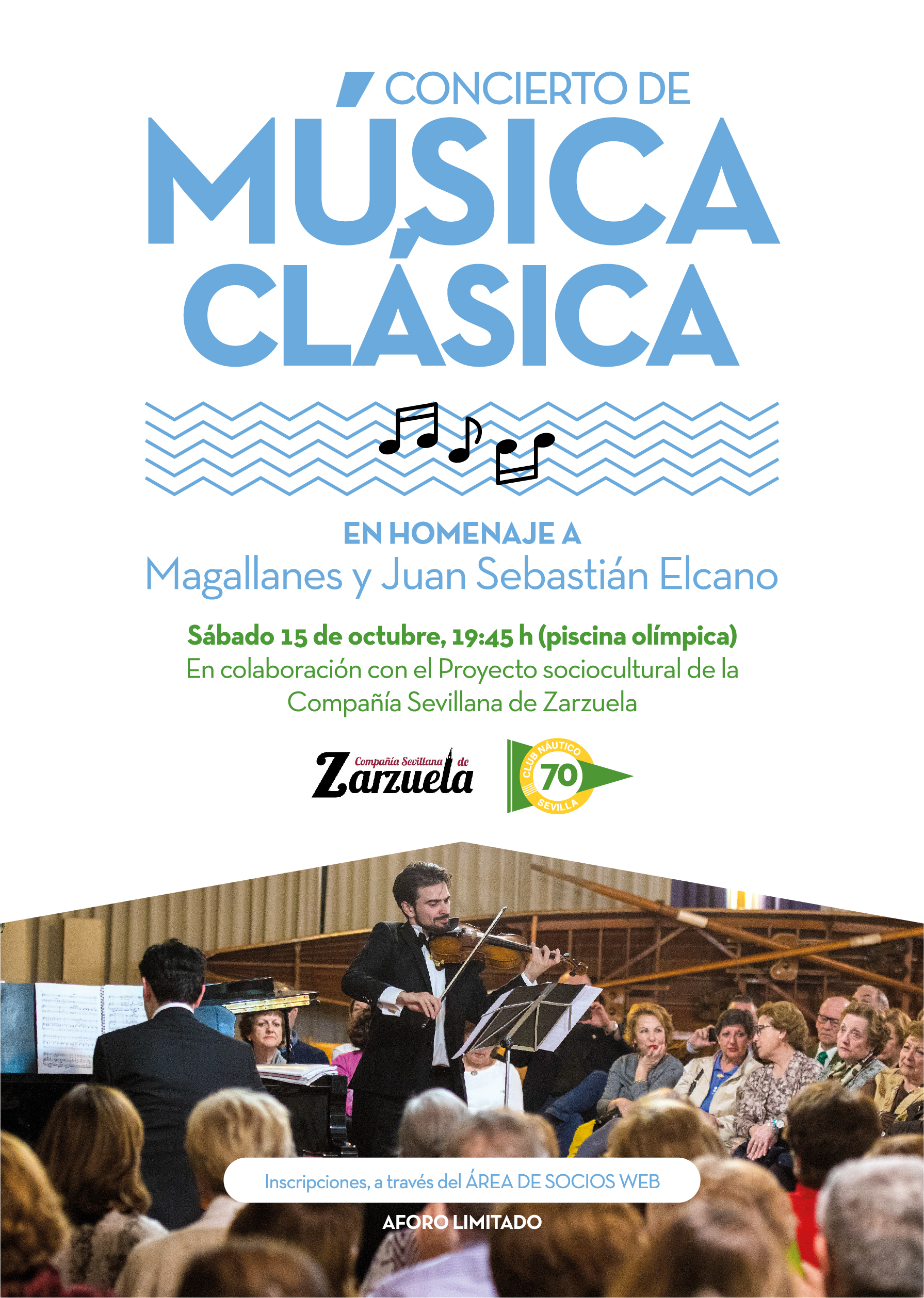 En homenaje a Magallanes y Juan Sebastián Elcano y con la colaboración del Proyecto sociocultural de la Compañía Sevillana de Zarzuela, el sábado 15 de octubre a las 19:45 h en la piscina olímpica. Inscripciones, a través del ÁREA DE SOCIOS WEB Aforo limitado.