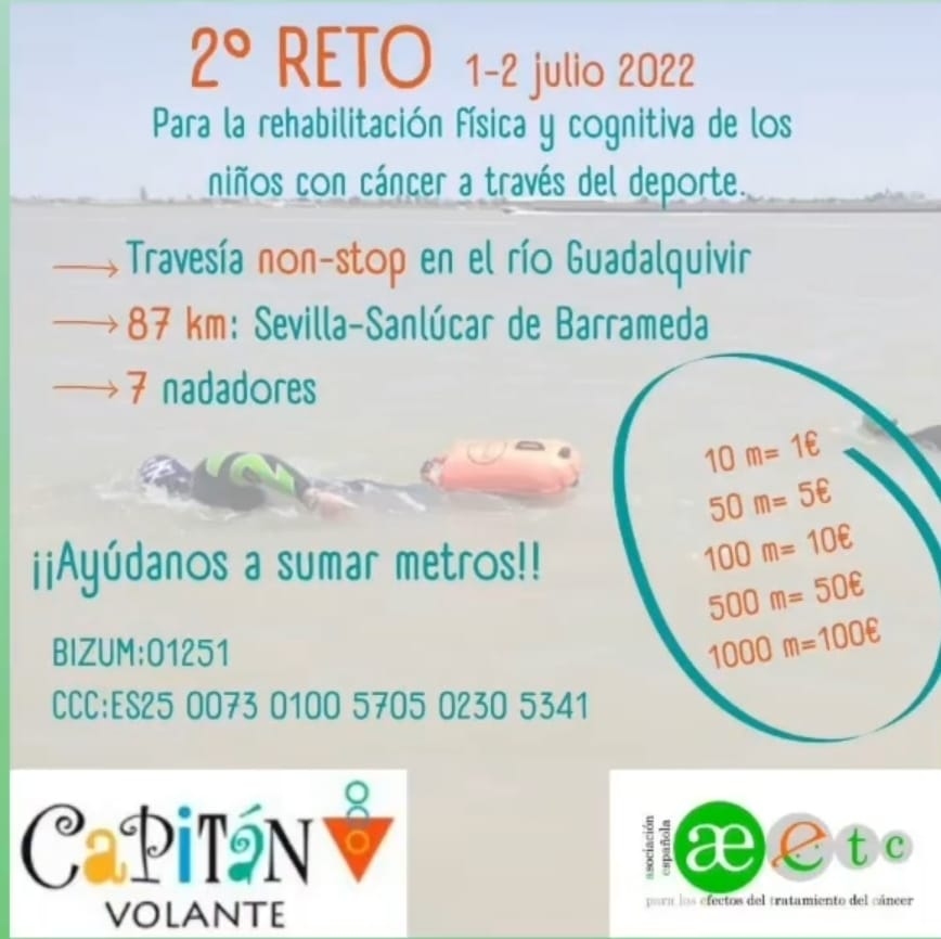 El Club Náutico Sevilla retoma este fin de semana su vinculación con el Proyecto Capitán Volante 2022, que con el objetivo de dar visibilidad y recaudar fondos para la Asociación Española para los efectos del tratamiento del cáncer (AEetc) ha organizado junto con la Unidad de Oncología Pediátrica del Virgen del Rocío varios retos deportivos para impulsar, especialmente en niños y adolescentes, la práctica del deporte para superar las secuelas del tratamiento oncológico. Tras la carrera por etapas y sin relevos entre Madrid y Sevilla de la pasada primavera, en esta ocasión la natación asume el protagonismo con el descenso del Guadalquivir entre la capital hispalense y Sanlúcar de Barrameda.