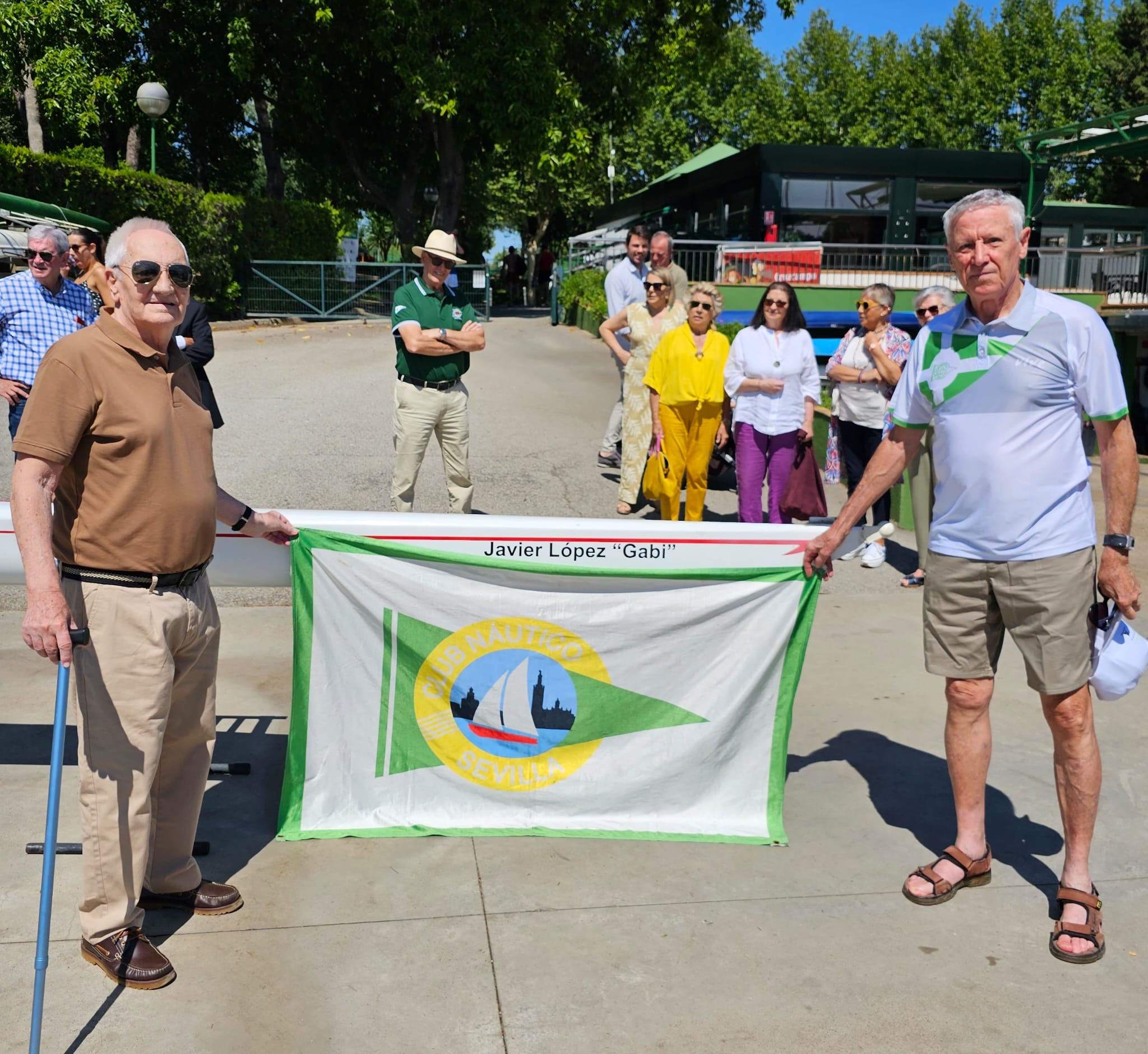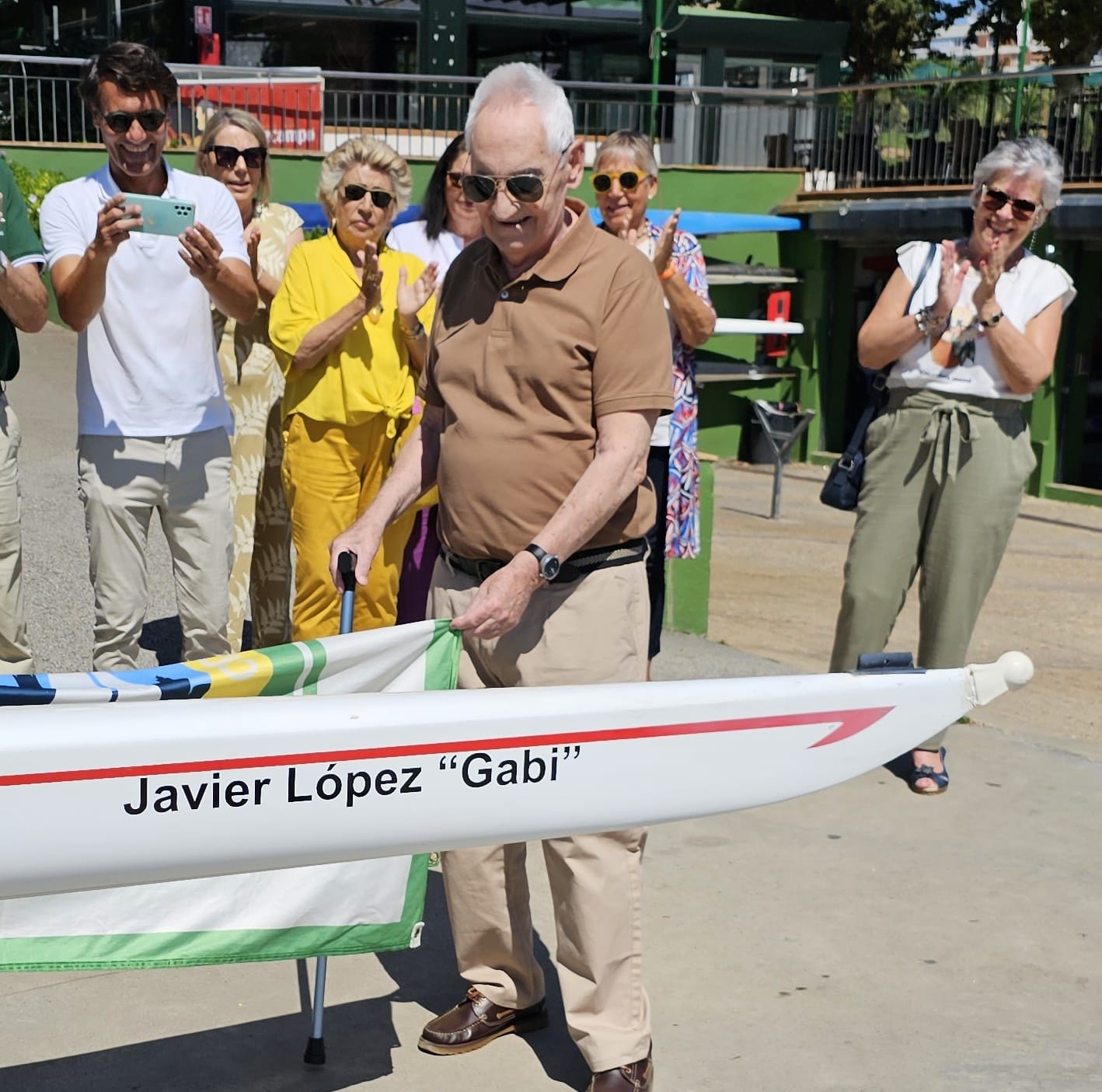 El Club Náutico Sevilla ha rendido homenaje a Javier López ‘Gabi’, componente de las primeras hornadas de remeros de la entidad, quien, rodeado de excompañeros, familiares y amigos, y con la asistencia de la presidenta, Alicia Caballero, ha descubierto un bote bautizado con su nombre.