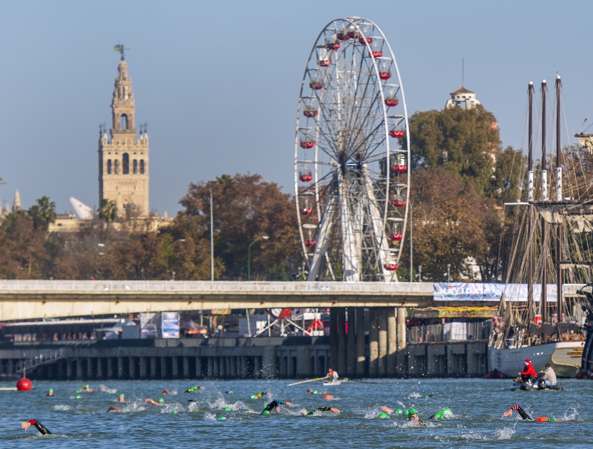 La segunda edición de la Travesía solidaria San Silvestre Club Náutico Sevilla cerraba el año competitivamente hablando en la capital andaluza. Frente a las instalaciones de la entidad hispalense y sobre la distancia de 500 metros, en torno a un centenar de nadadores se daban cita en la matinal del último día del año en la dársena del Guadalquivir para despedir 2022 en una prueba solidaria cuyos ingresos eran destinados de forma íntegra a la Hospitalidad Diocesana Sevilla-Lourdes,