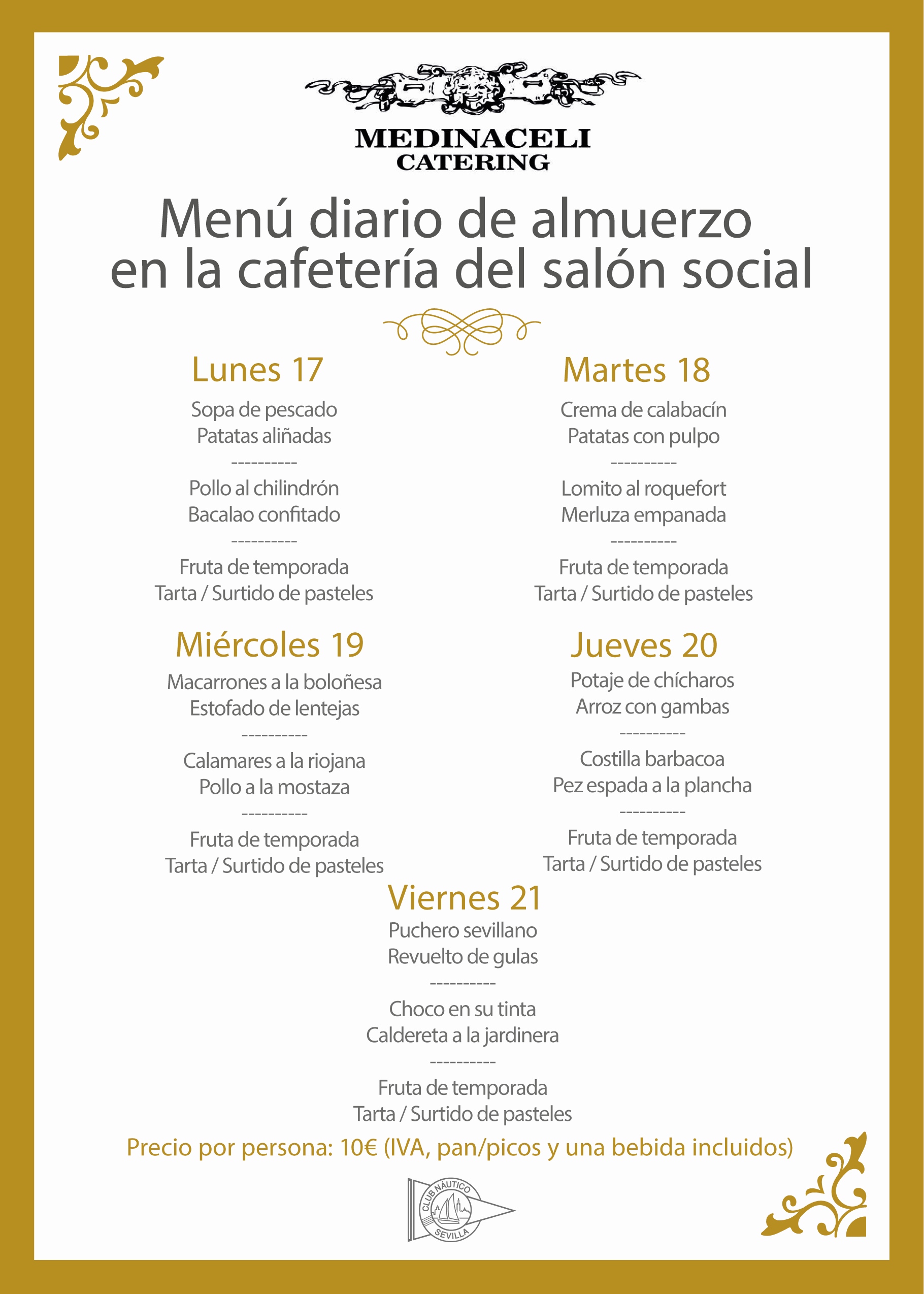 Disponible a mediodía en la cafetería del salón social desde el lunes 17 al viernes 21 de noviembre al precio de 10€/persona (IVA, pan/picos y una bebida incluidos).