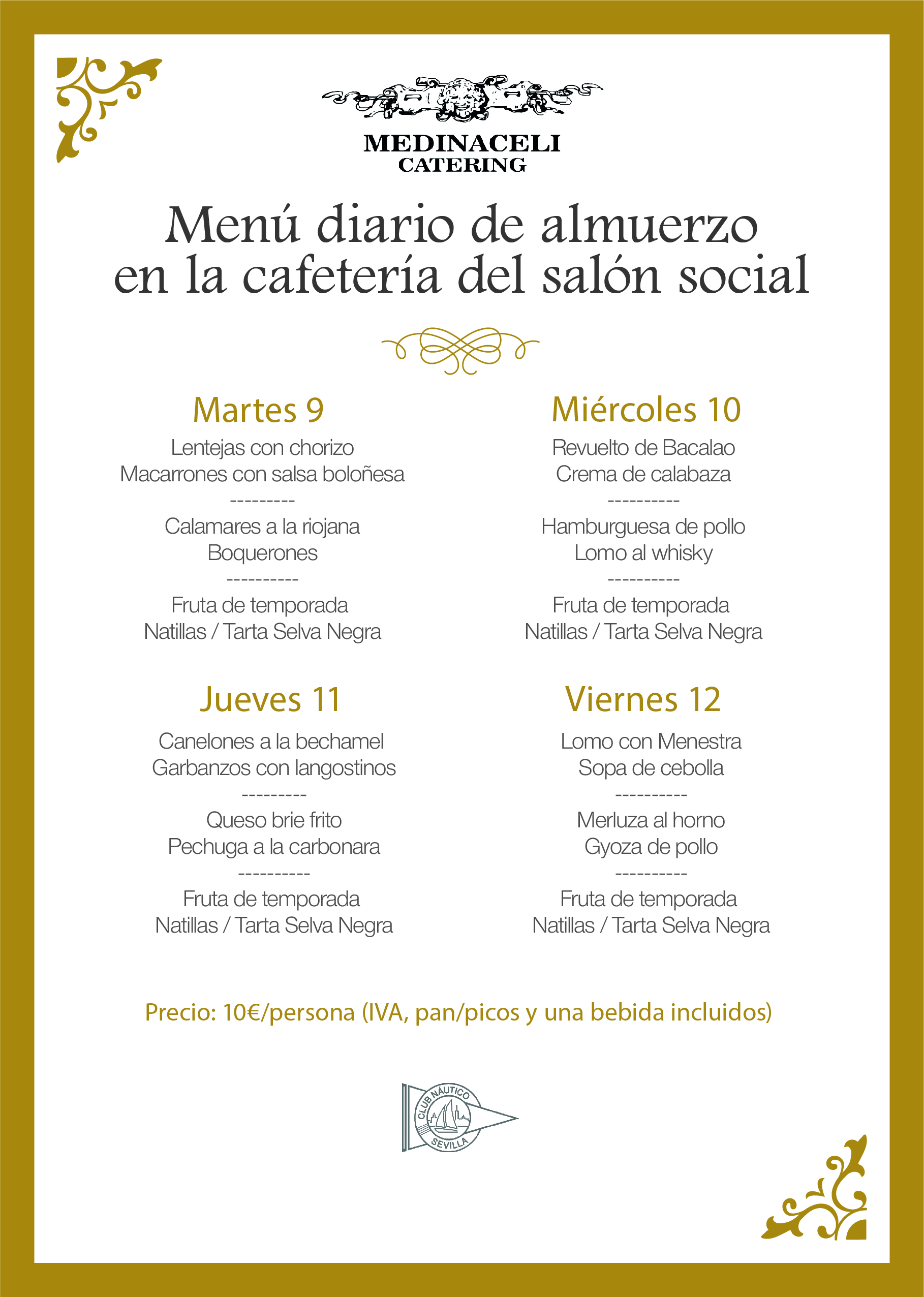 Disponible a mediodía en la cafetería del salón social desde el martes 9 al viernes 12 de diciembre al precio de 10€/persona (IVA, pan/picos y una bebida incluidos).