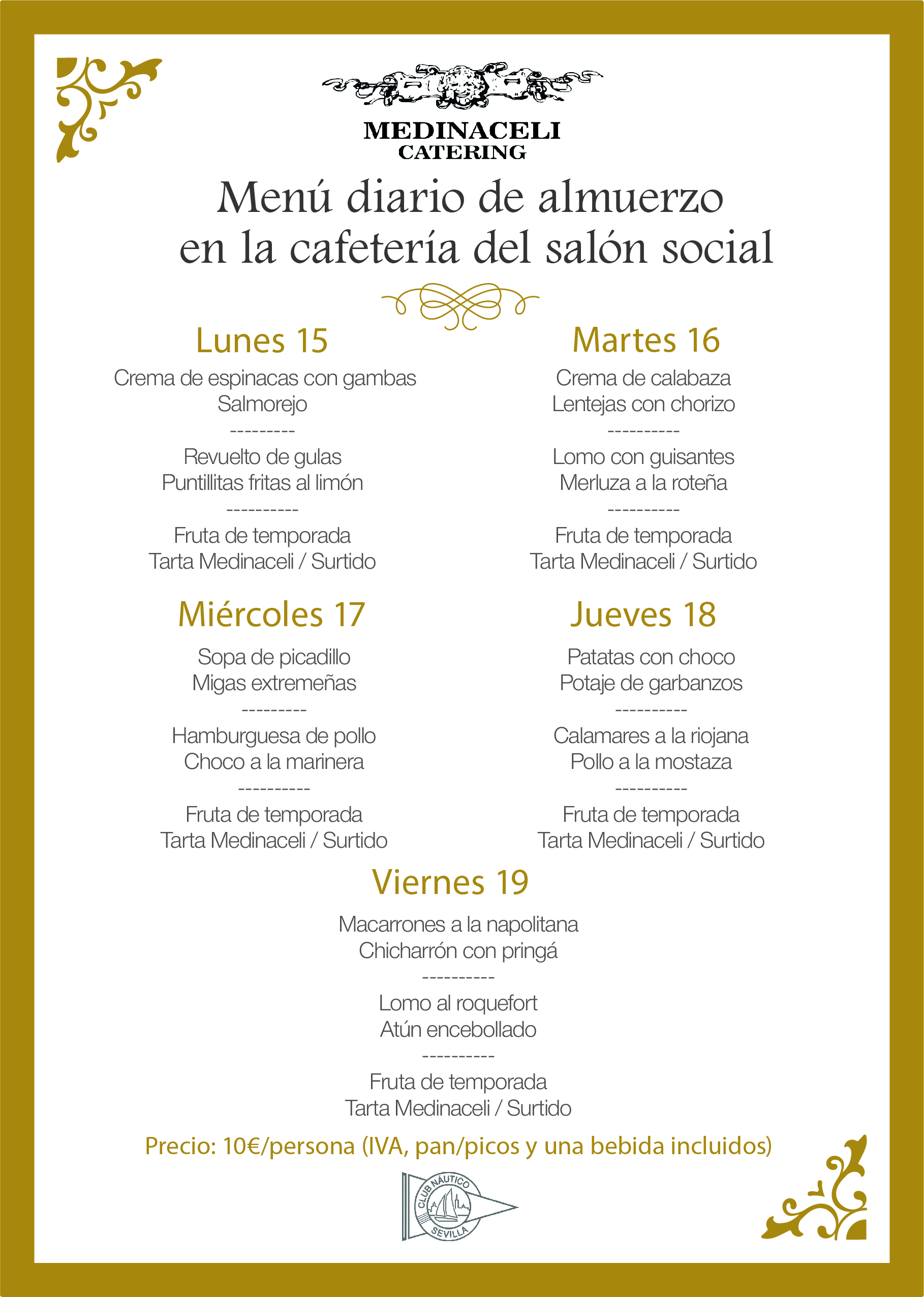 Disponible a mediodía en la cafetería del salón social desde el lunes 15 al viernes 19 de diciembre al precio de 10€/persona (IVA, pan/picos y una bebida incluidos).