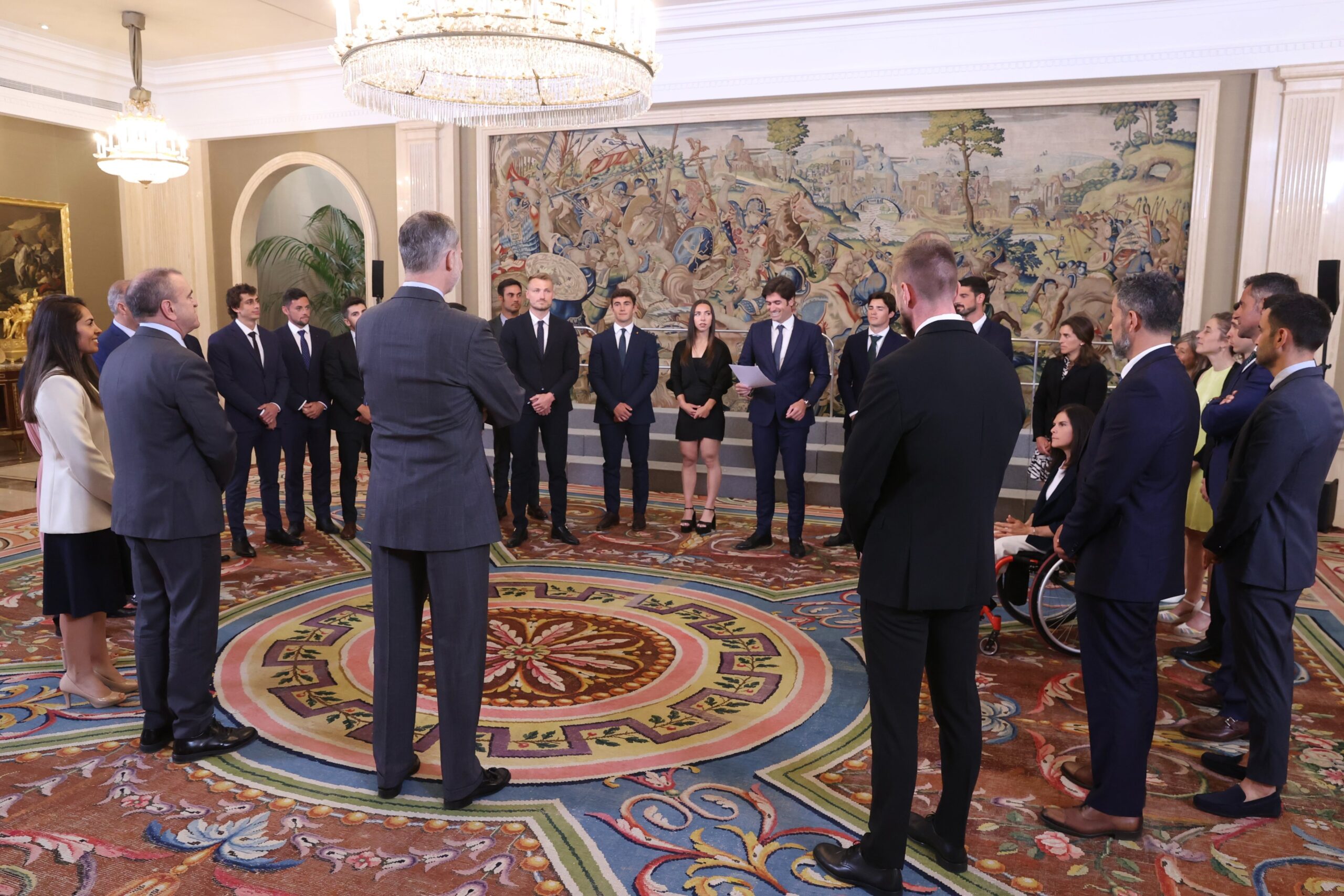 Los medallistas en Campeonatos de Europa y del Mundo la pasada temporada, incluidos los Socios de Honor del Club Náutico Sevilla Cayetano García de la Borbolla y Pablo Martínez, han sido recibidos este viernes en Audiencia Real por el rey Felipe. #SomosNáutico